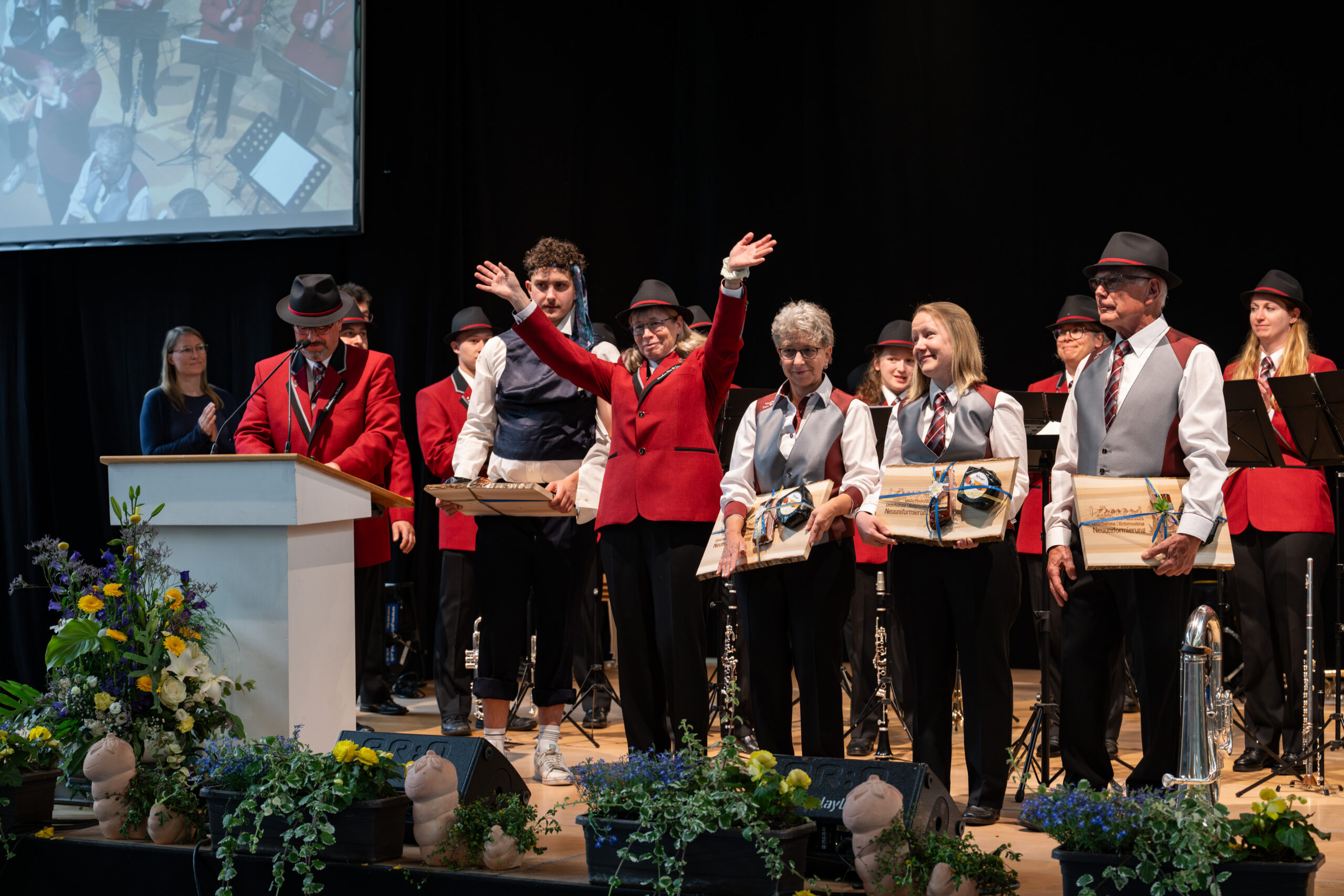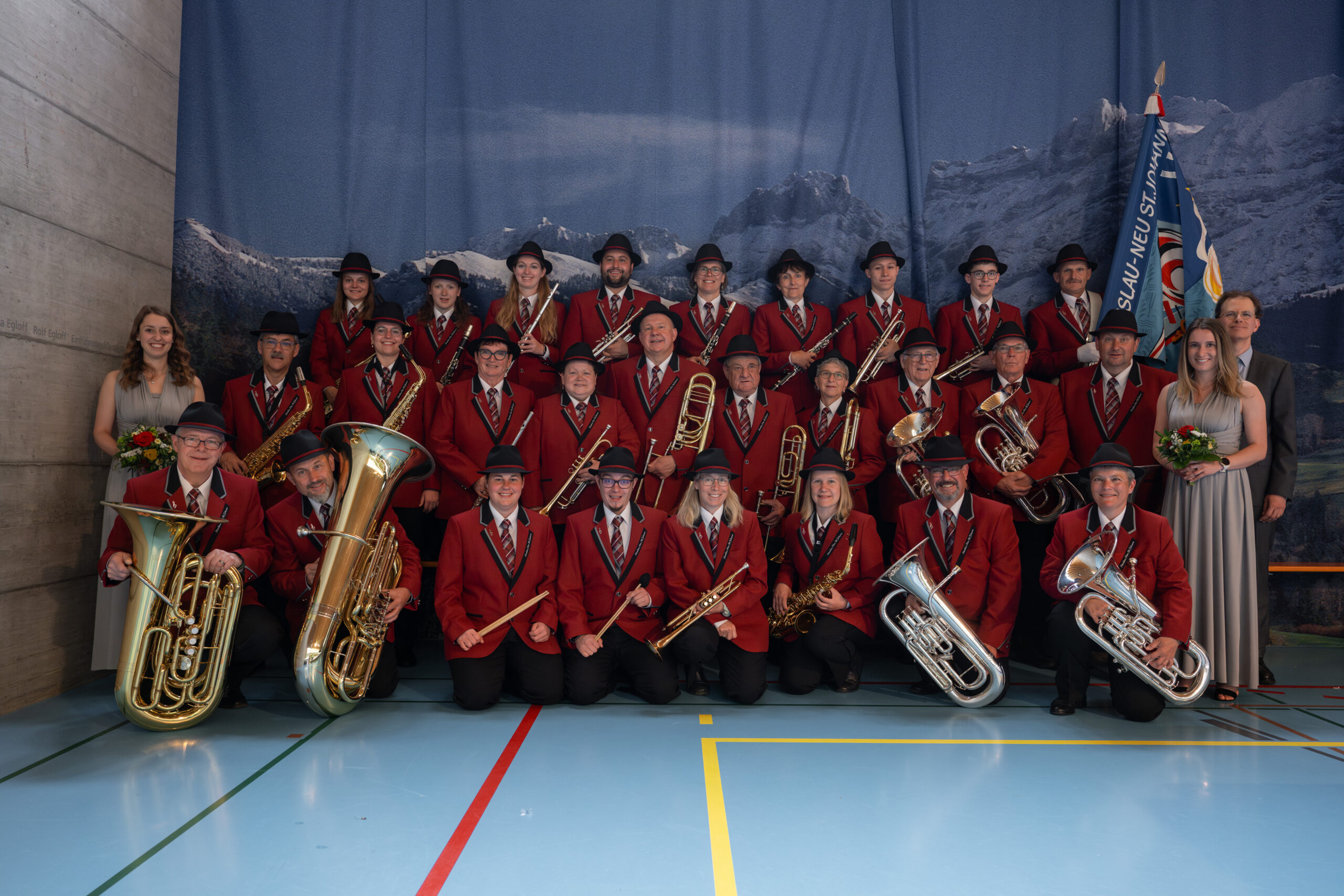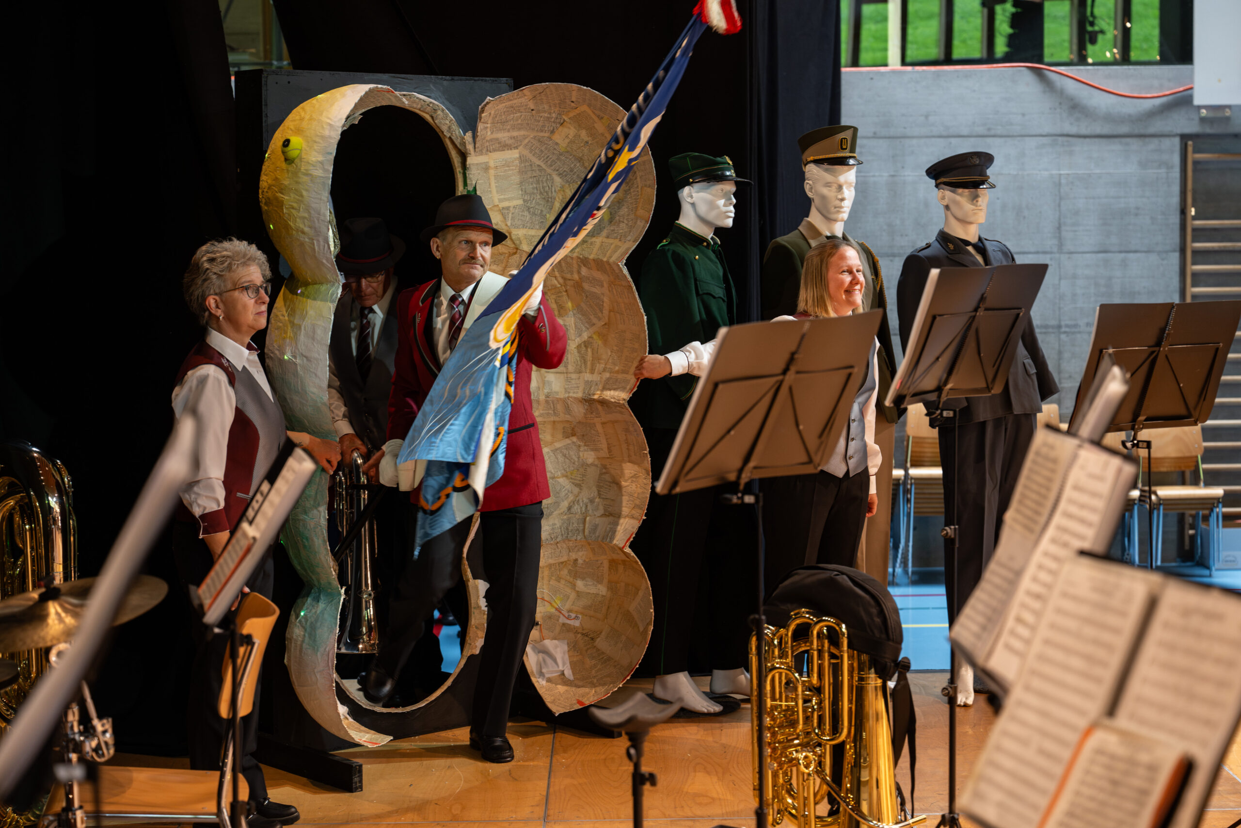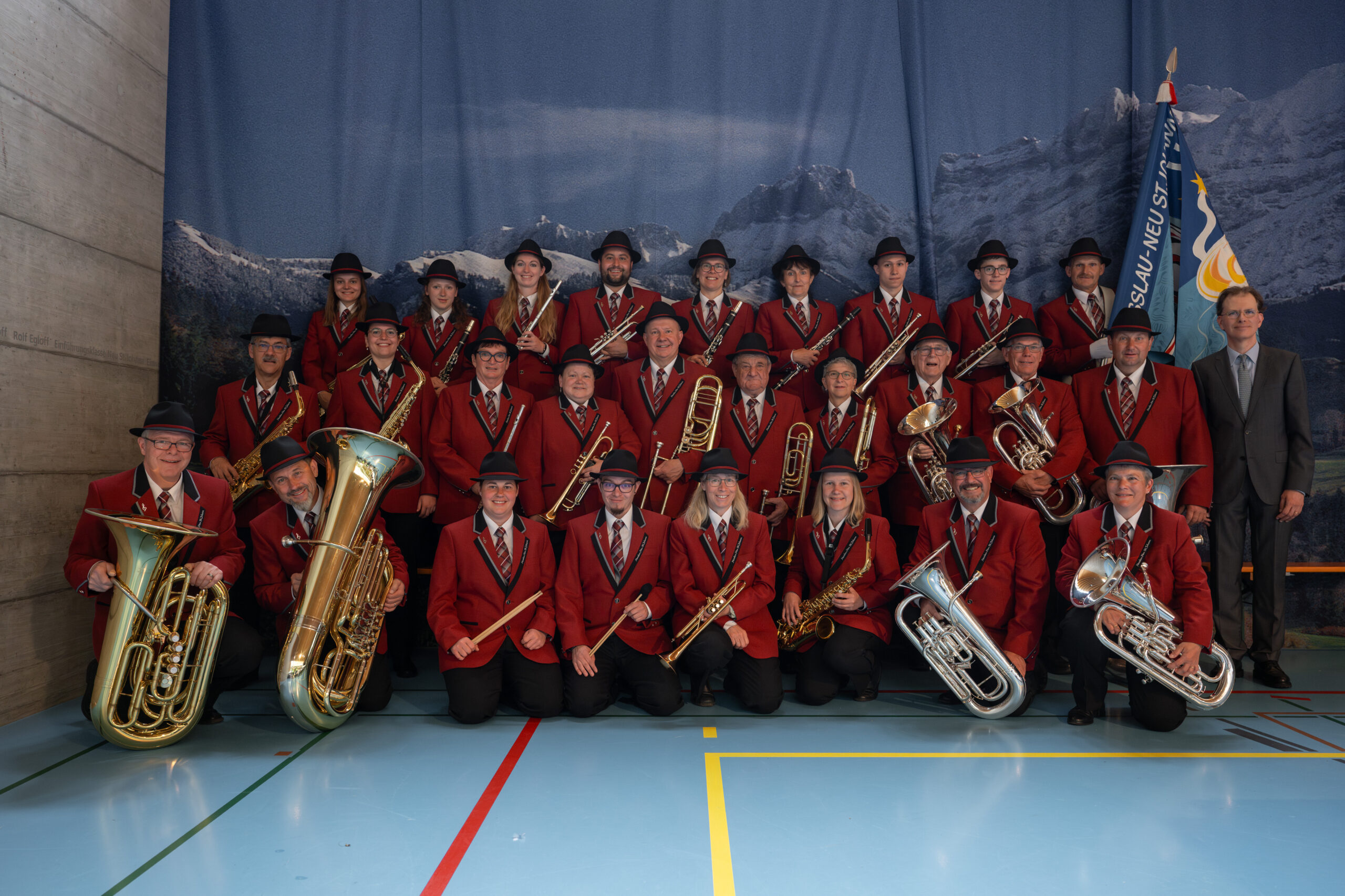Das Organisationskomitee bestehend aus Musikantinnen und Musikanten, auf dem Bild von oben links: