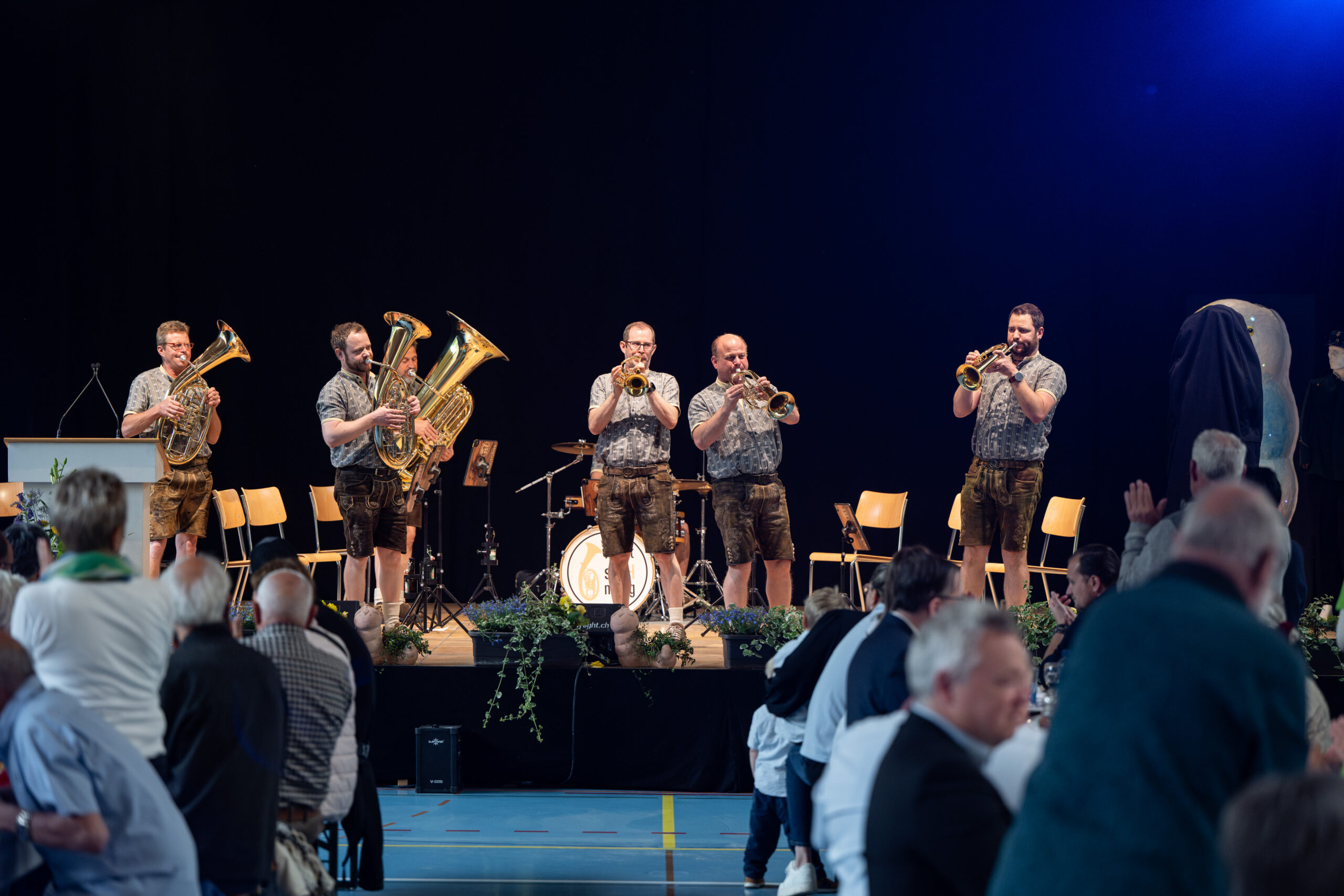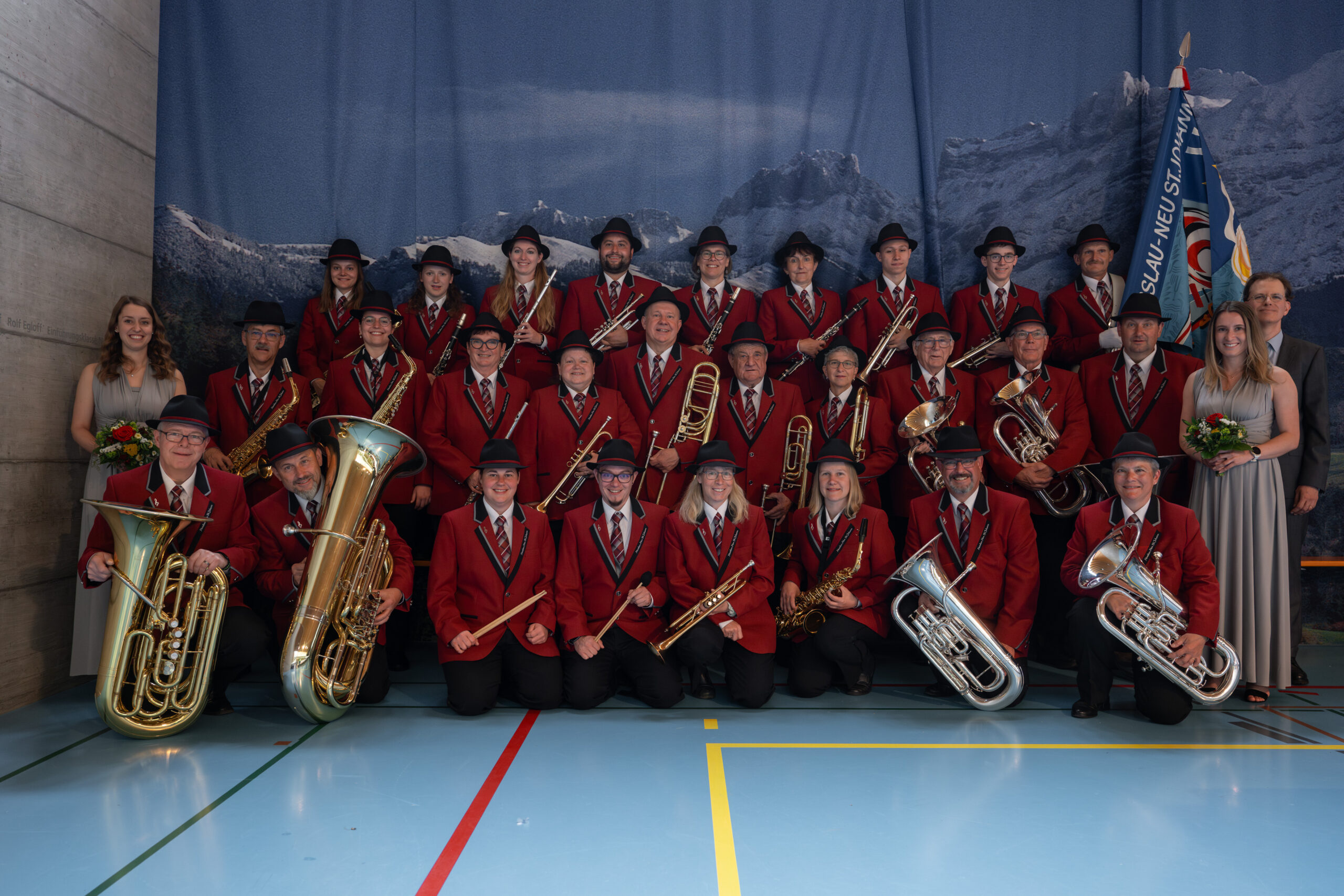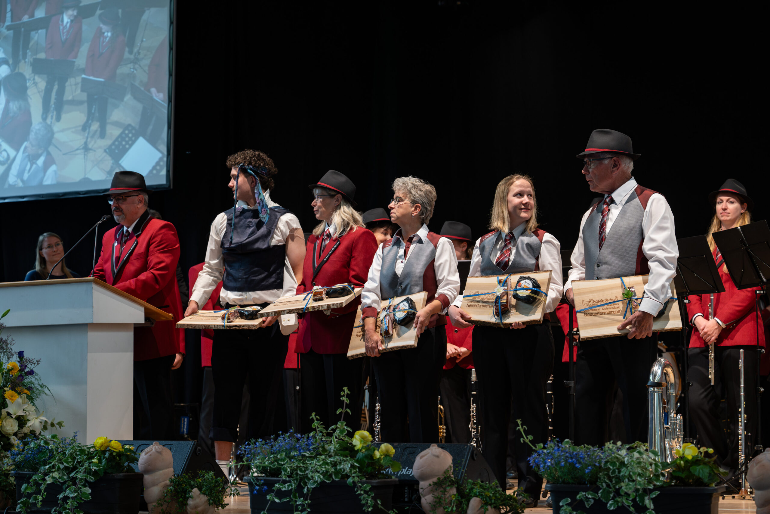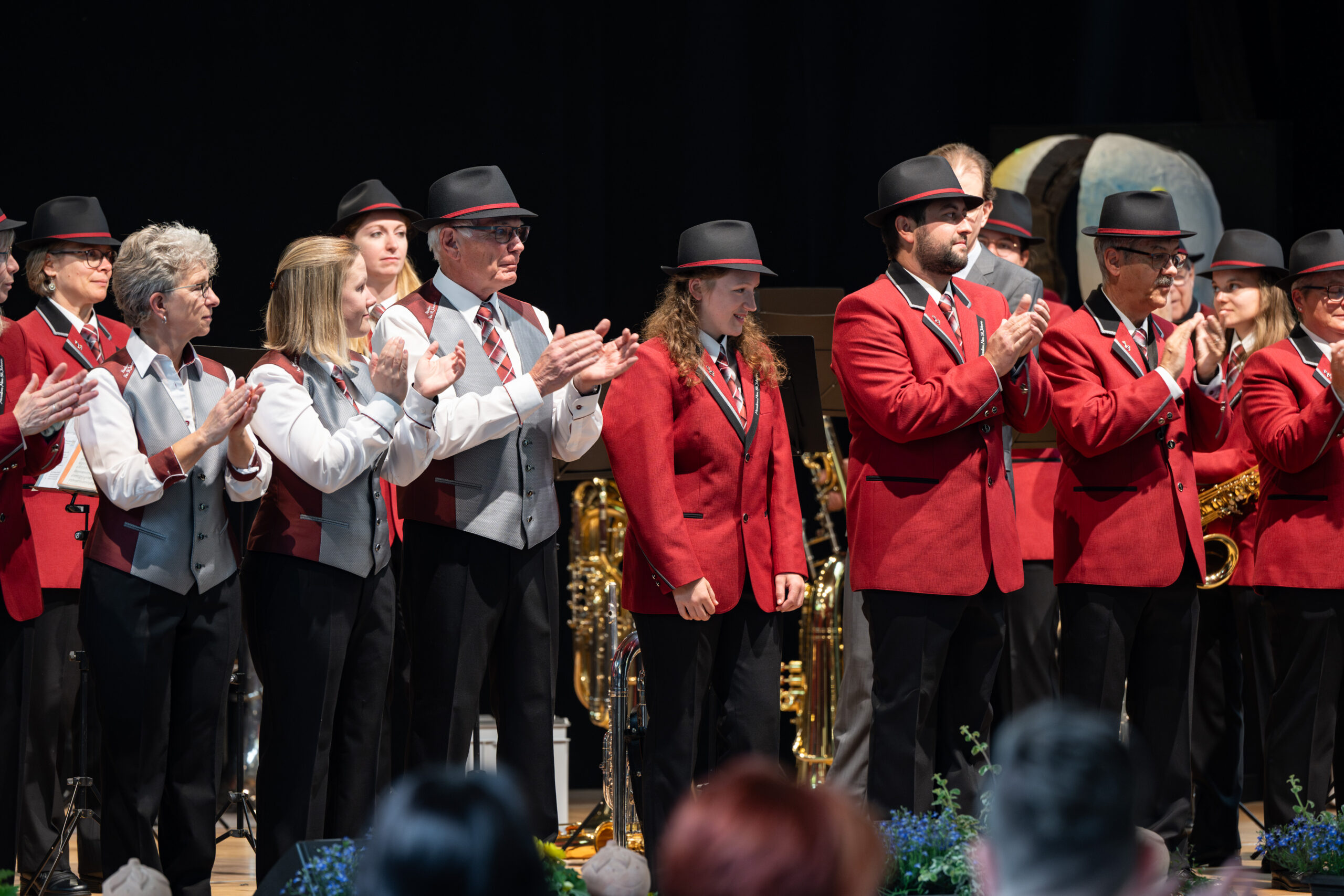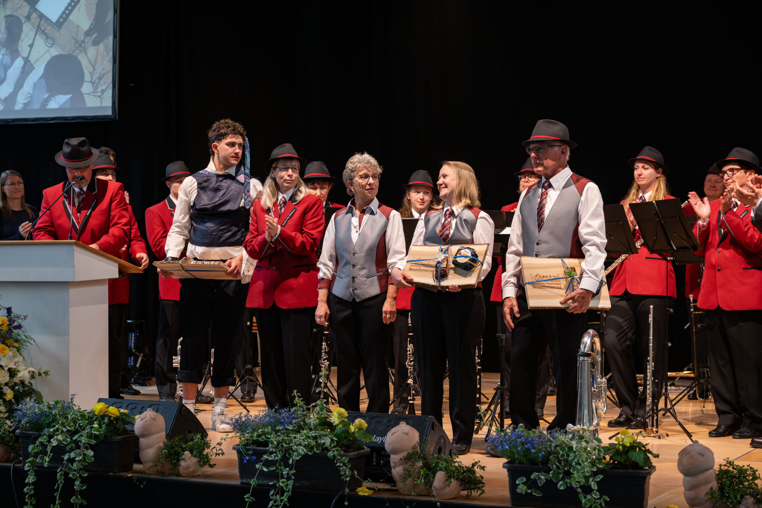 Das Organisationskomitee bestehend aus Musikantinnen und Musikanten, auf dem Bild von oben links: