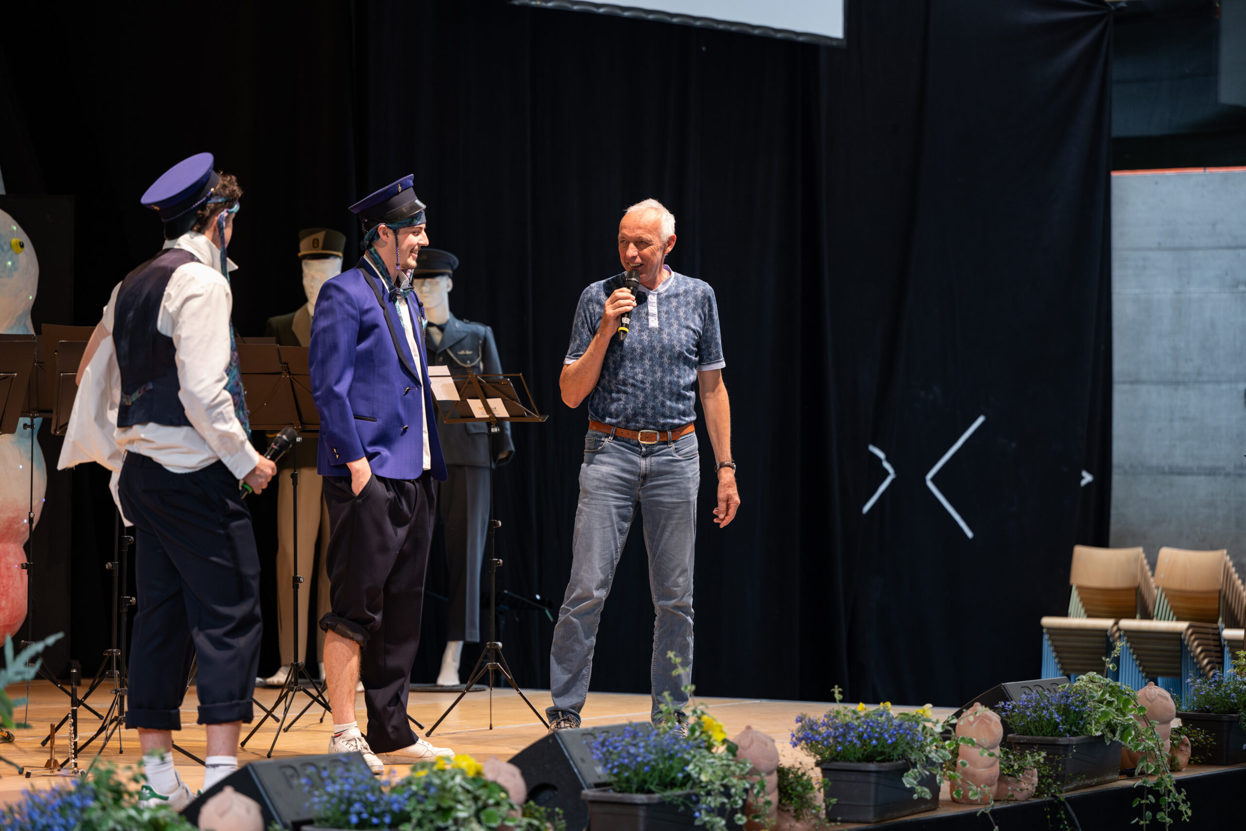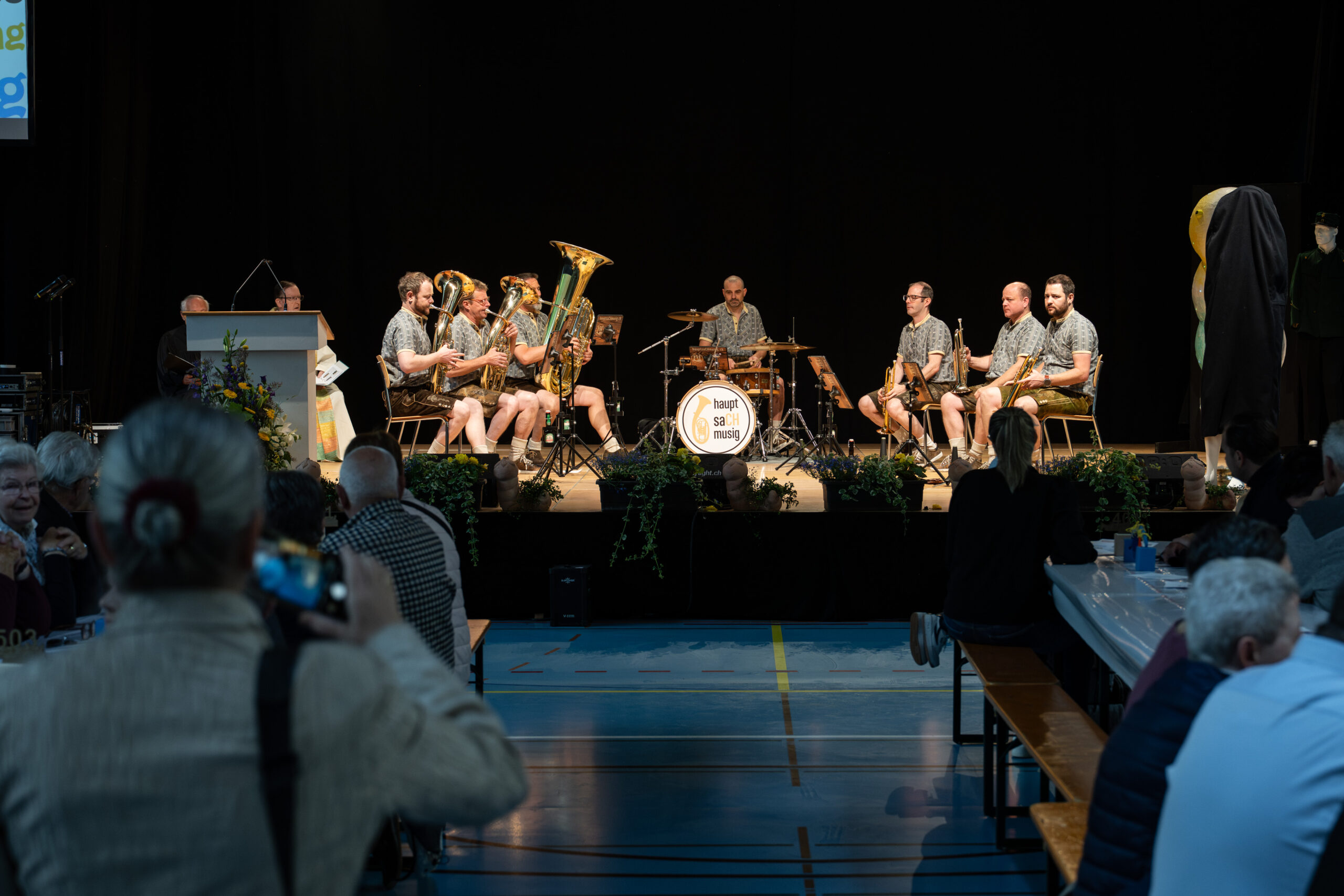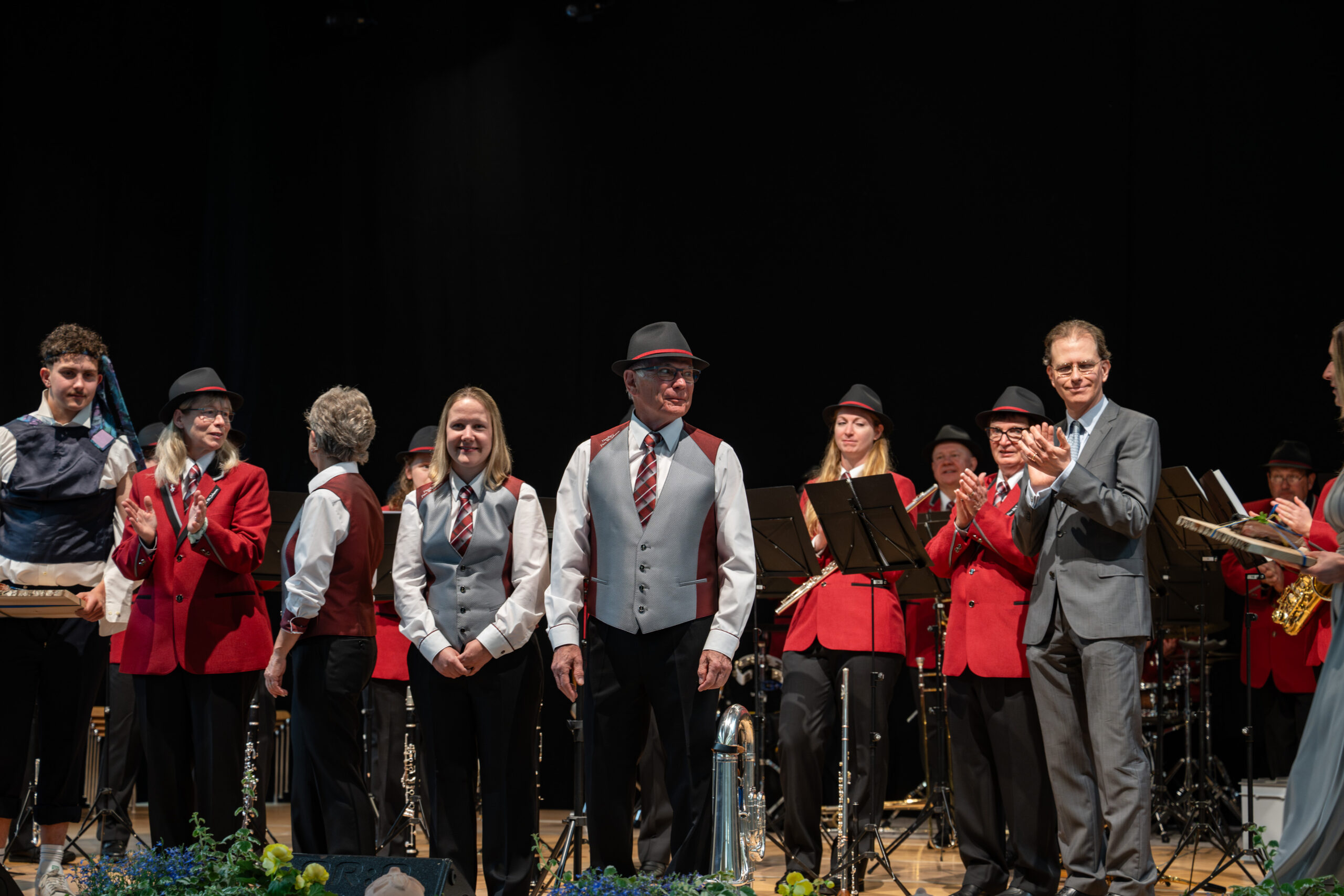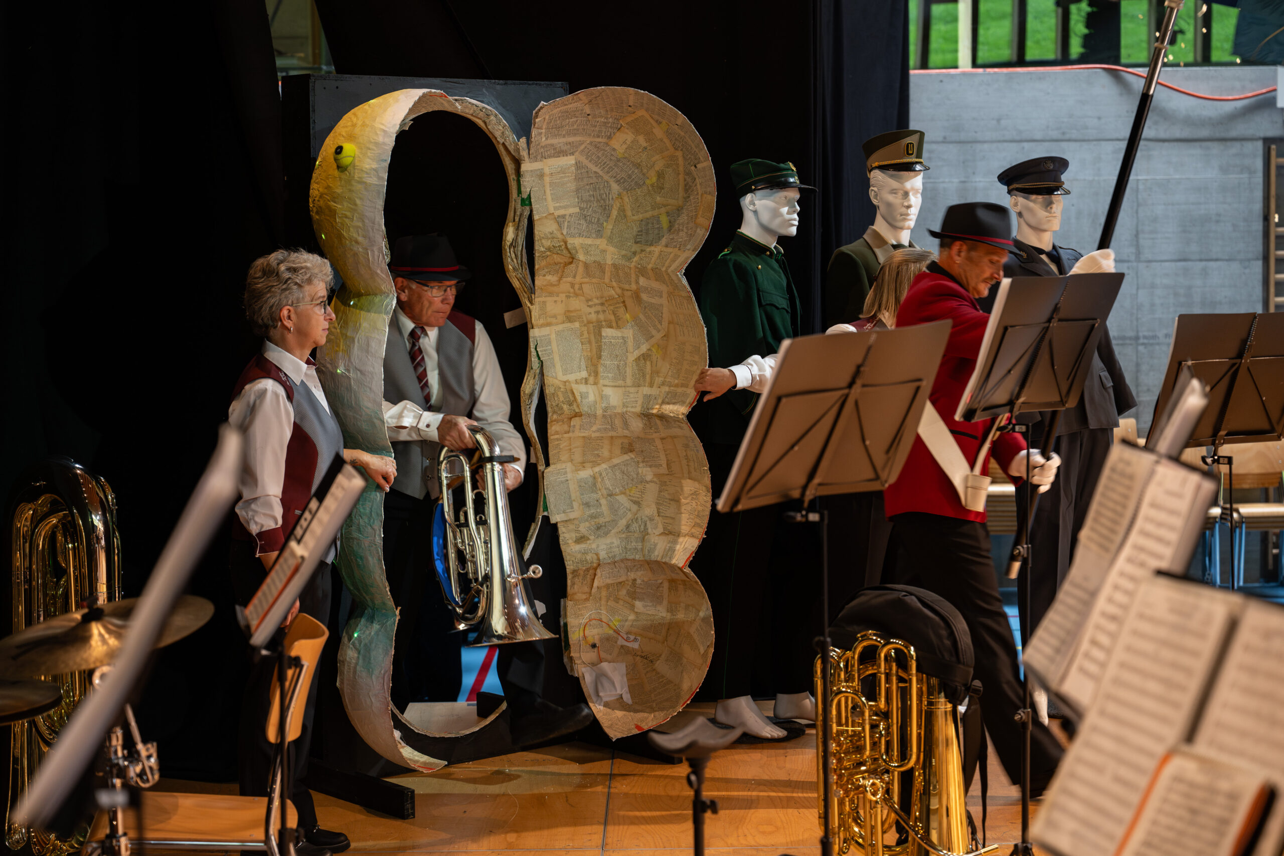 Das Organisationskomitee bestehend aus Musikantinnen und Musikanten, auf dem Bild von oben links: