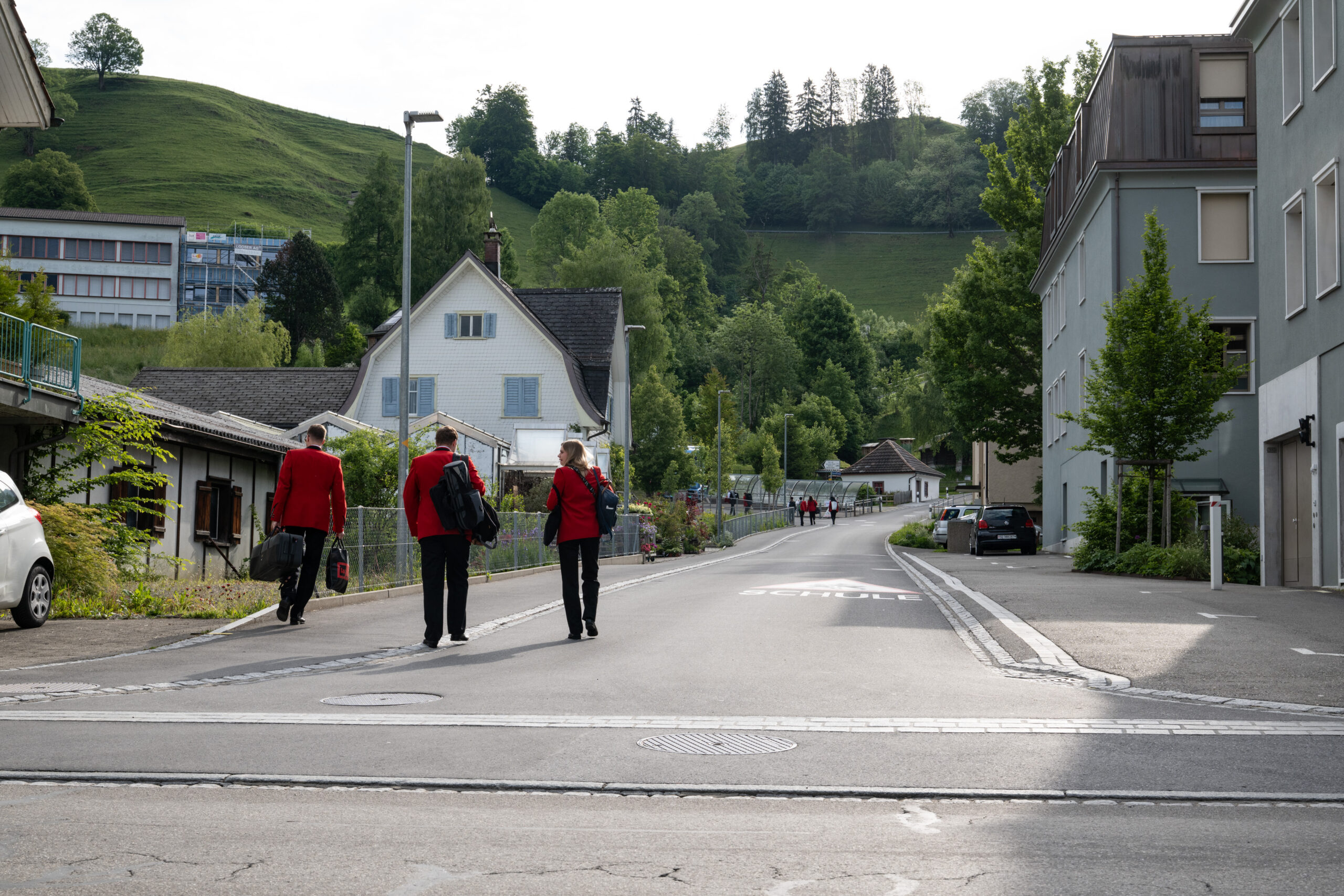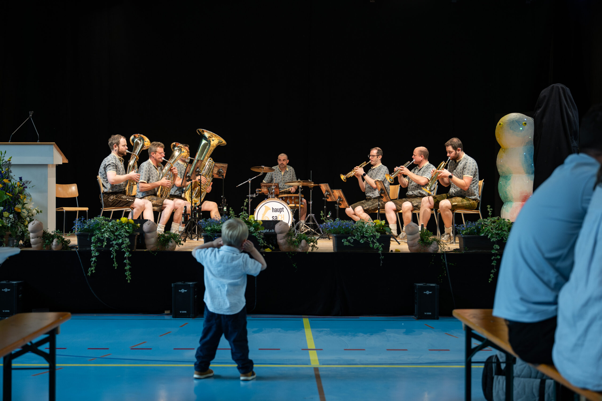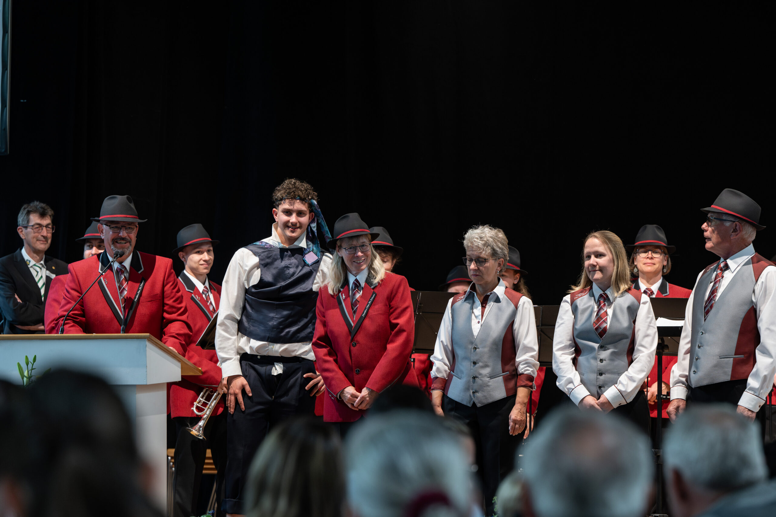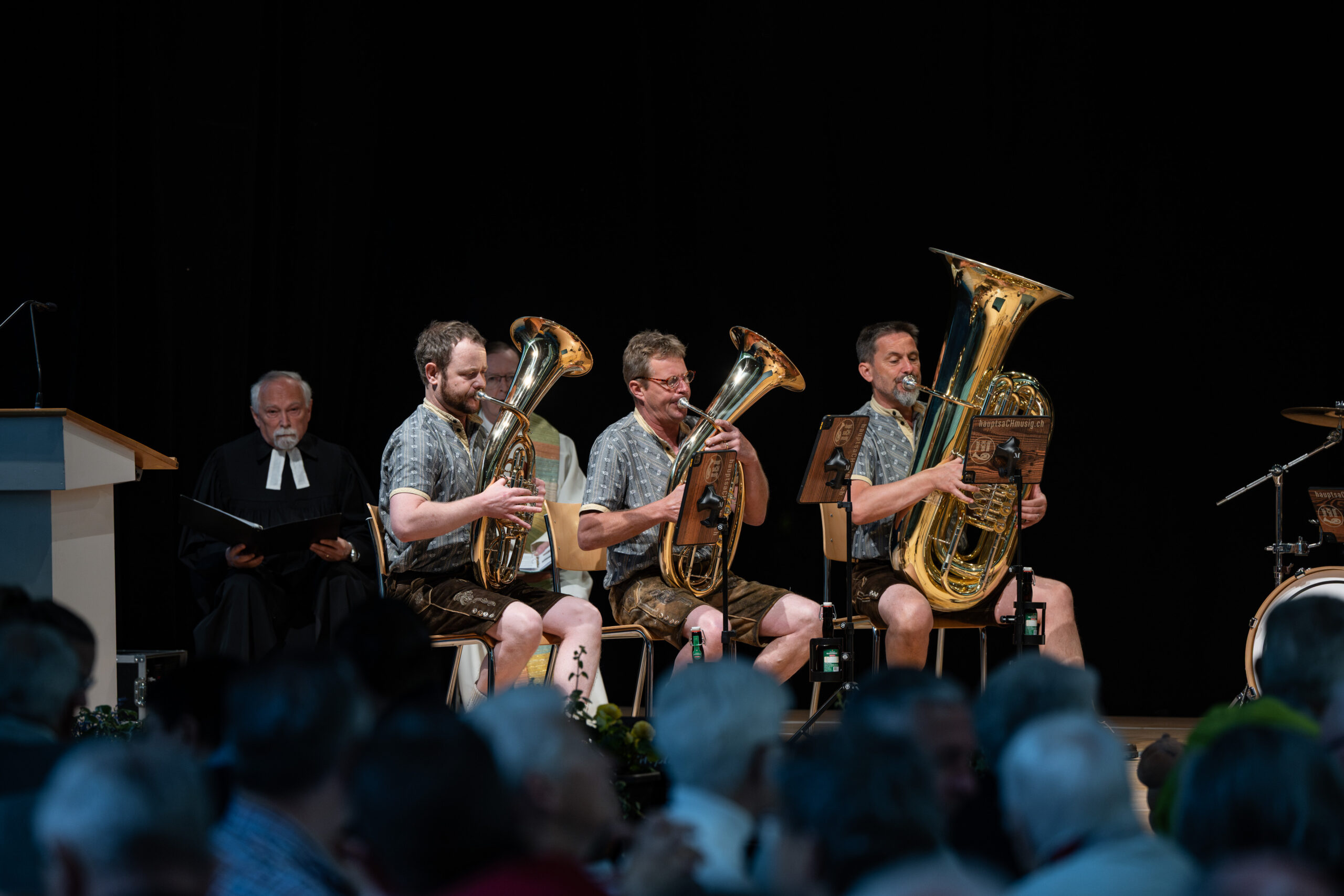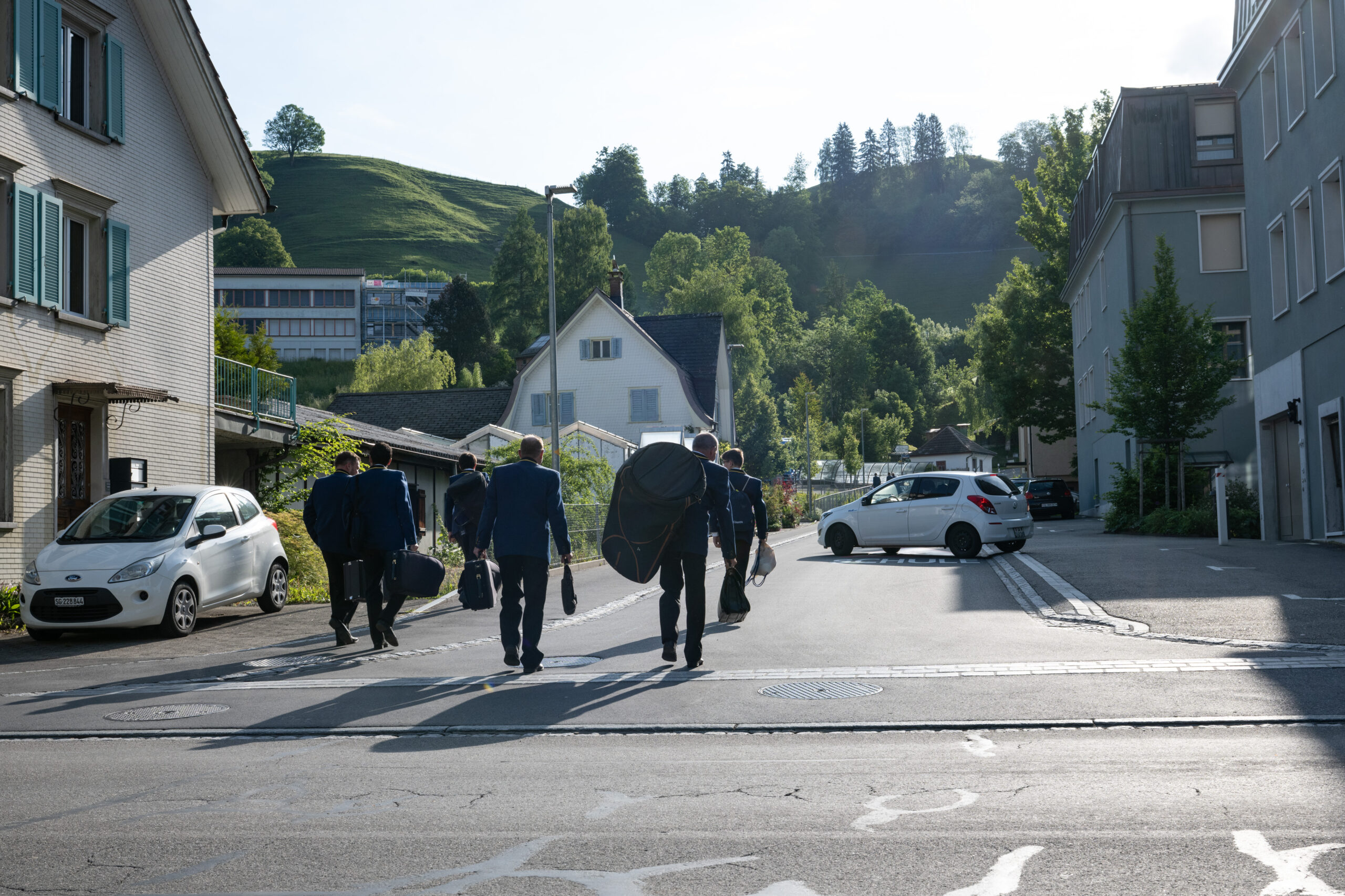 Das Organisationskomitee bestehend aus Musikantinnen und Musikanten, auf dem Bild von oben links: